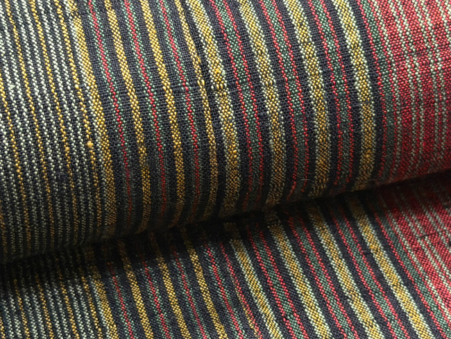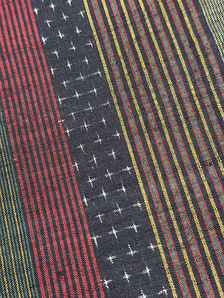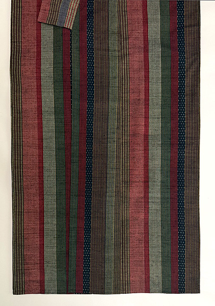 大きな刷毛目のような絣が縦に整然と並んで、その間に2列の縞があります。
