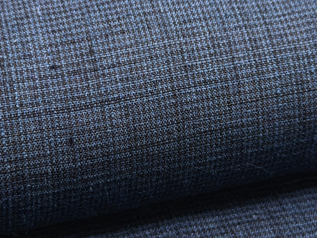 藍に黒の微塵格子の結城紬は灯屋2いち押しの冬のアイテム。