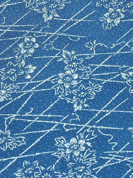 藍の濃淡の絣で、植物の文様やエ霞を織り出した本場結城紬です。