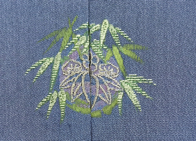 粋な柄行きで、青楓の輪郭や葉脈のところどころに金糸の刺繍をほどこすことで上品な豪華さを添えています。