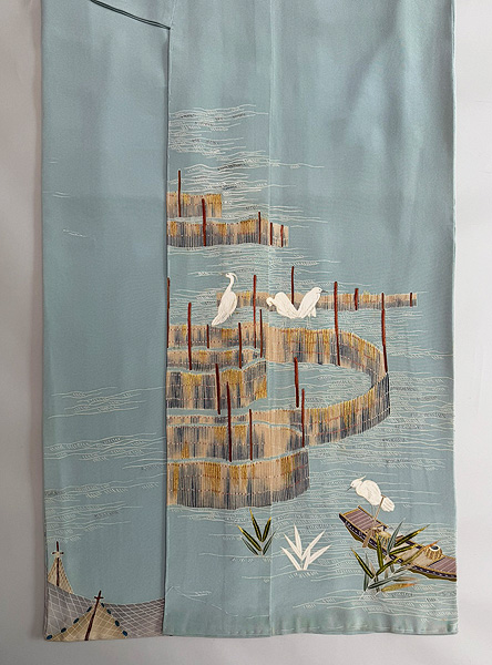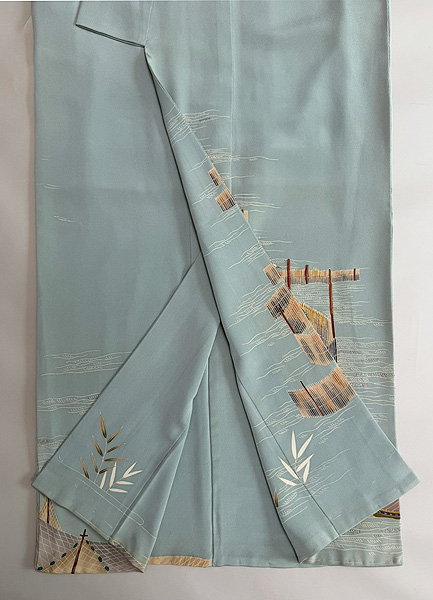 藍一色で、これだけ深み、軽みのある素敵な着物に仕上げる松原工房の力を感じさせる付下です。