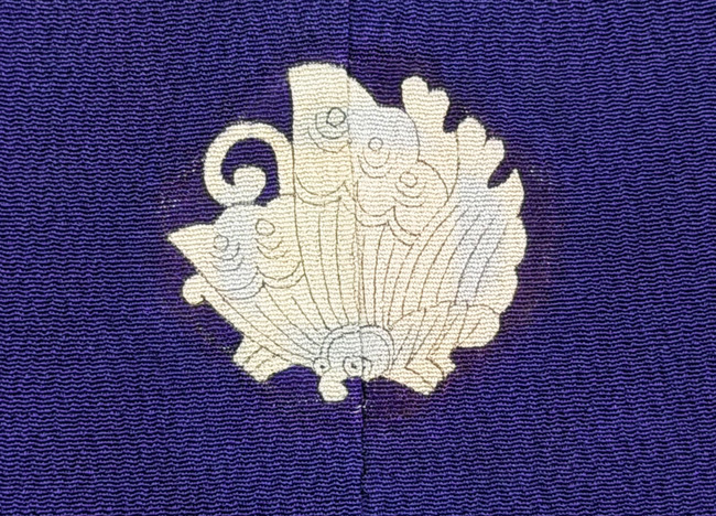 紫にくっきりと浮かび上がる揚羽蝶の家紋が潔くて素敵です。