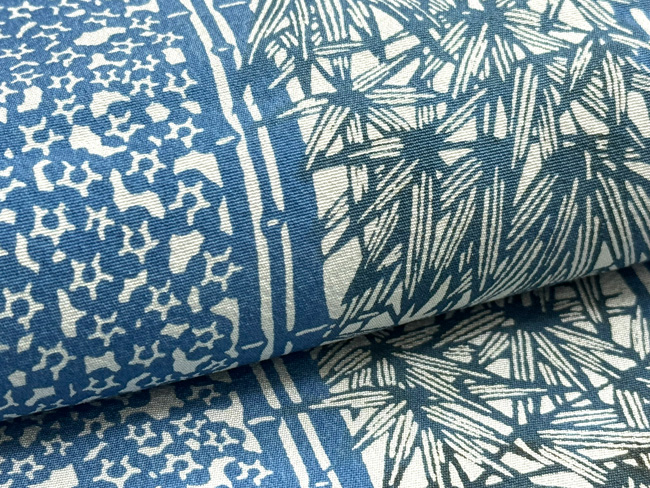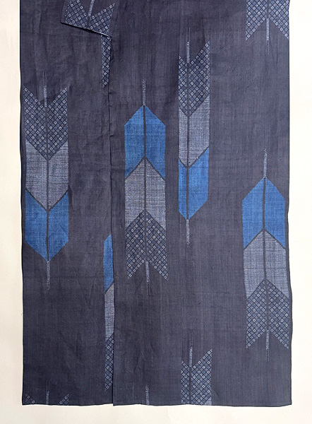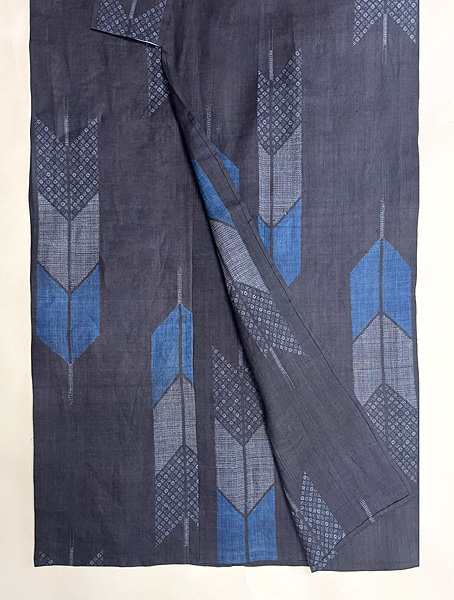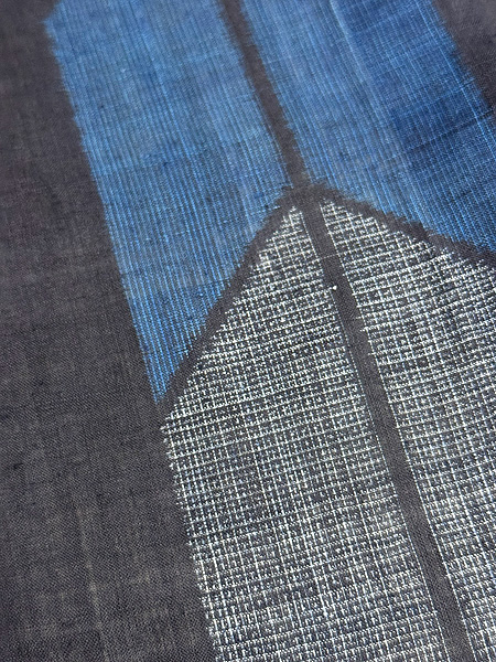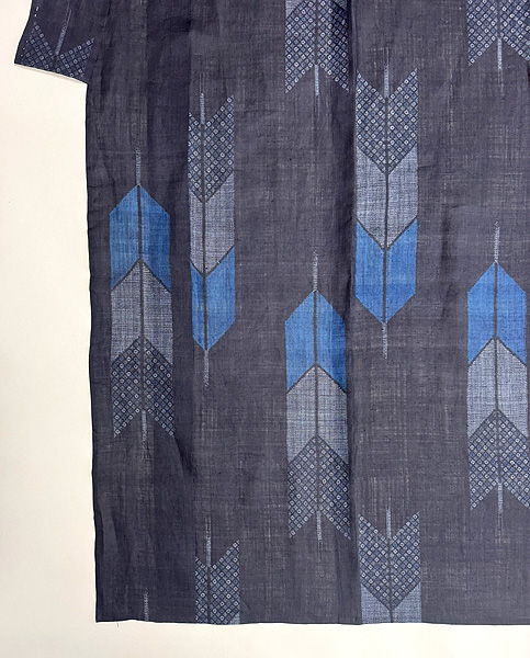 大きな矢羽根の中には、3種の絣が織り込まれていて、きれいなブルーの色が精彩を放っています。