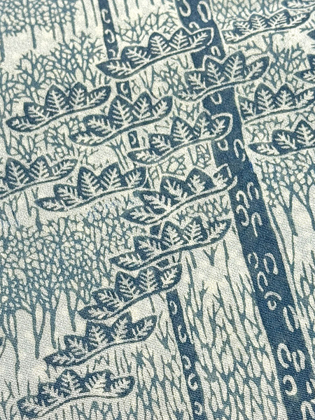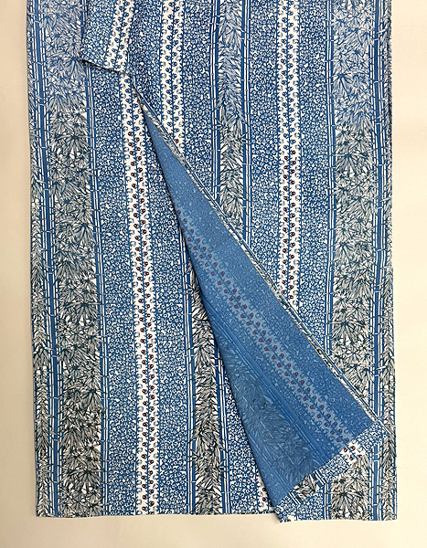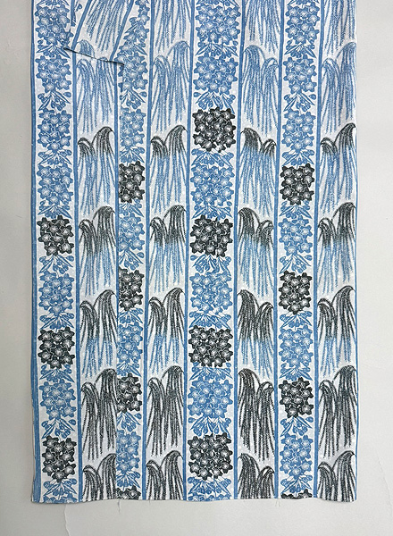 おちついたブルーグレーの色調が品よく、裾に向かって濃くなる松葉がアクセントになっています。