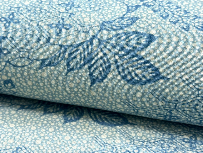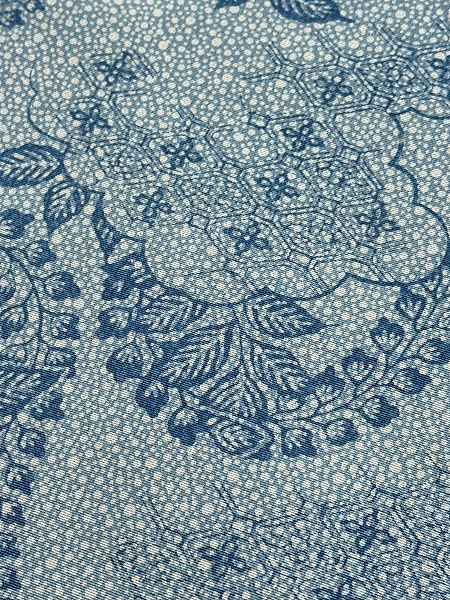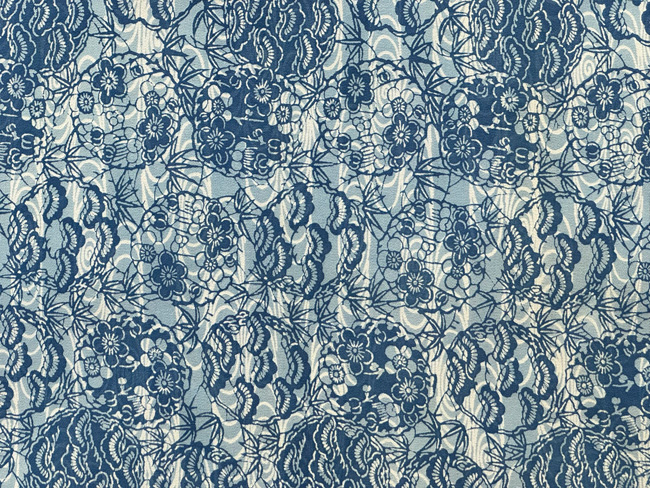 縮緬地に、わずかに黄味を帯びた藍色がやさしい地色。
