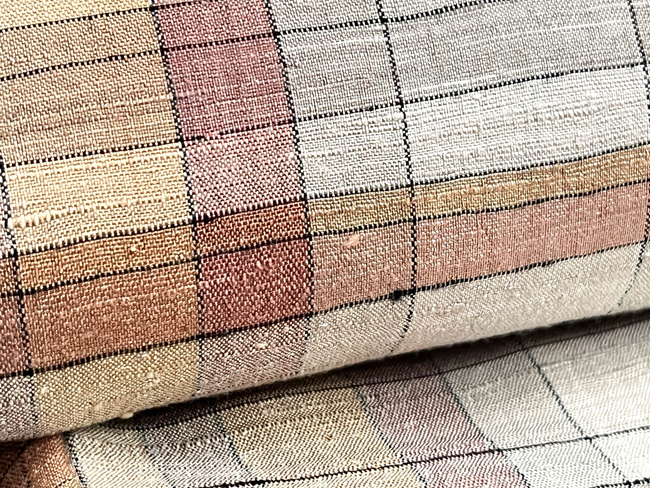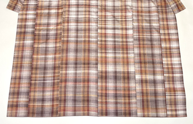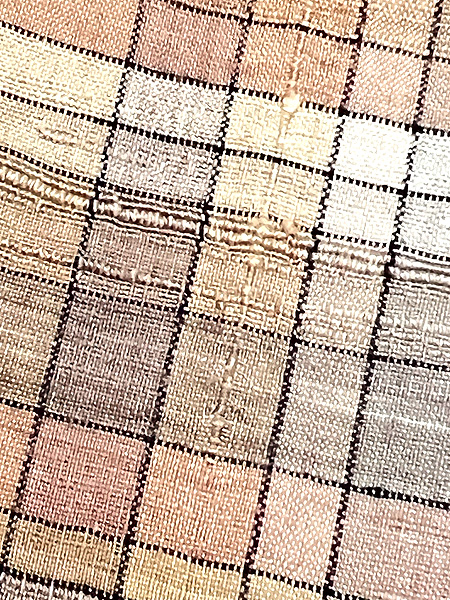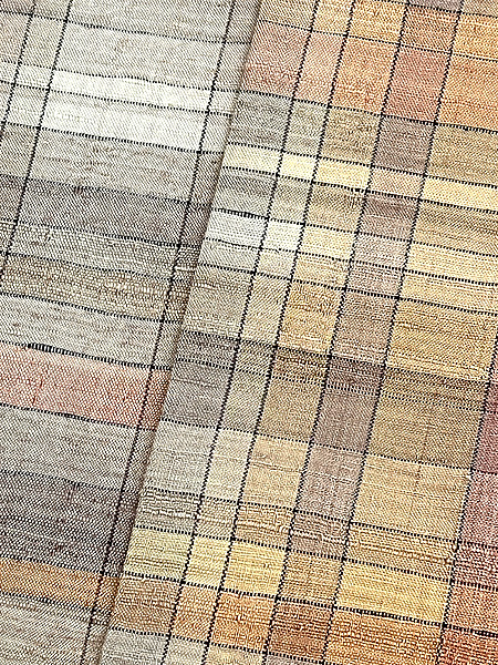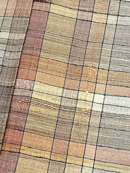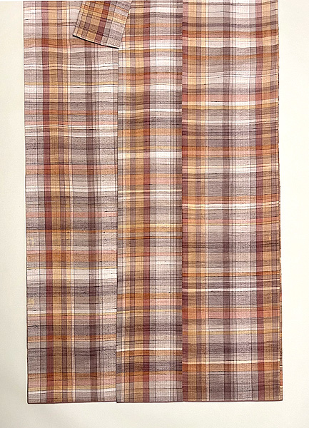 志村さんの36年作「芦刈」という作品があり、(「志村ふくみの紬織」より)縞建ては少し違いますが、全くおなじ色糸を使っての付下となっています。