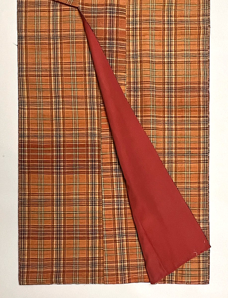 この朱格子は、1970代に京都で茜染めに没頭された頃、志村ふくみさんご自身が、朱に憑かれるように織ったと仰っている時期の作品かと思われます。