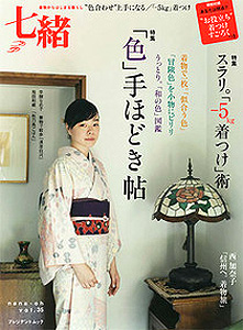 表紙、及び巻頭の秋月洋子さんがスタイリングする「年末年始の日めくり暦」に灯屋2のきもの、帯が紹介されています。