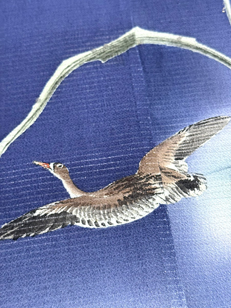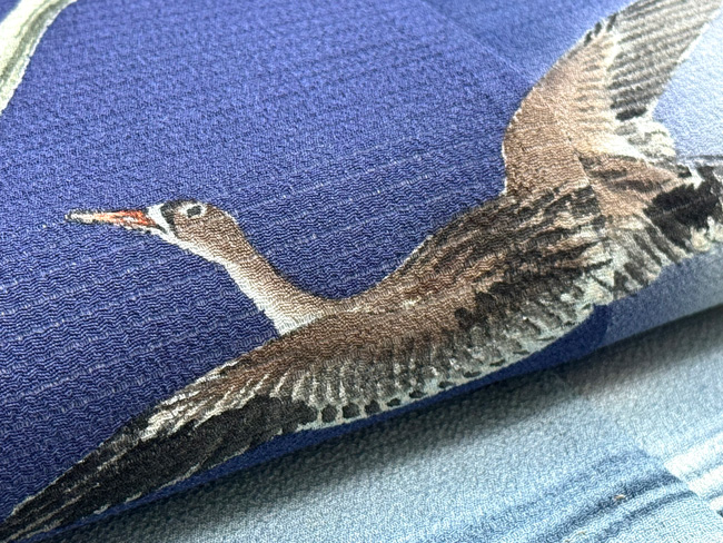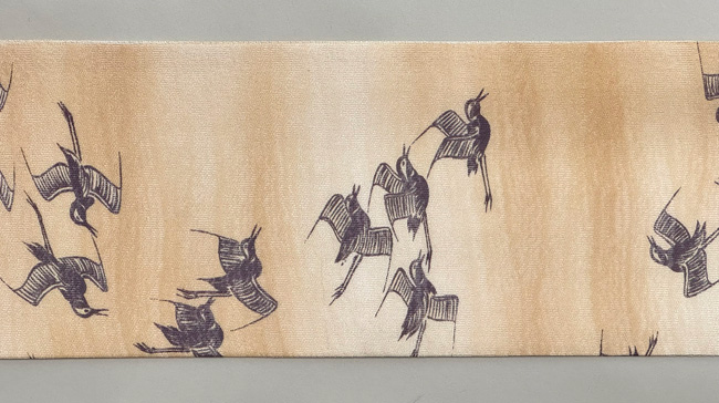 舫舟に雁の絽縮緬名古屋帯
