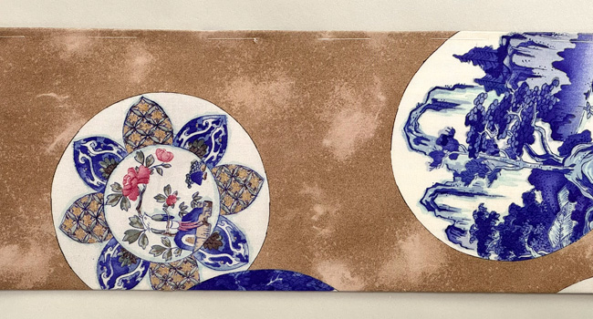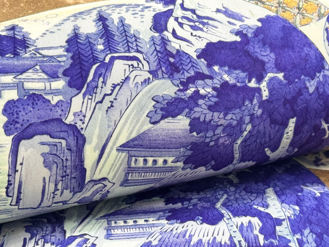 丸帯が重なって、楼閣山水や花鳥文など、大陸の情緒漂う名古屋帯です。