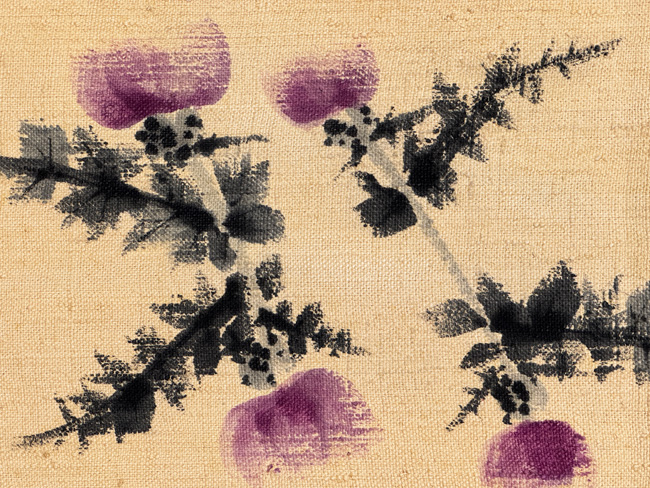 渋いベンガラ色を基調に、穏やかな波間に海松がたゆとうています。