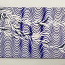 手描きによるゆらゆらとした線が、なんとも素朴で優しく、白地に2色の色がモダンに配されていて魅力は尽きません。