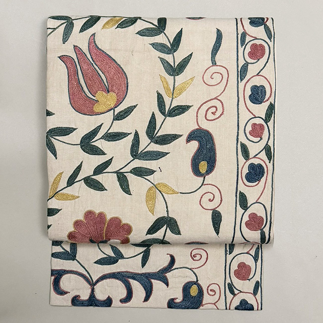 インド、インドネシア、中東、アフリカなど、世界各地で出会った心踊る布で仕立てた外国布、更紗の帯。