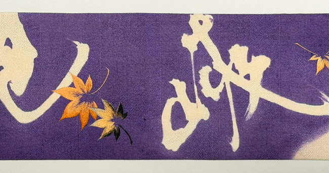丸帯崩しです。染め出された漢字12文字を解読してみましたら漢詩が現れました。