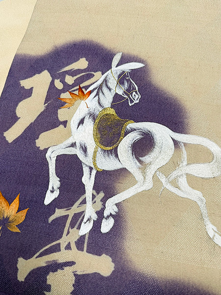 丸帯崩しなので、金と紫の華やぎの中にも落ち着きが見られます。