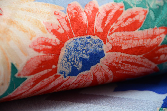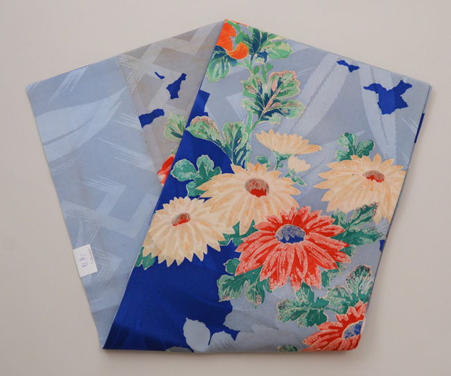 花菱文の綸子地に、きれいな刺繍が施されています。