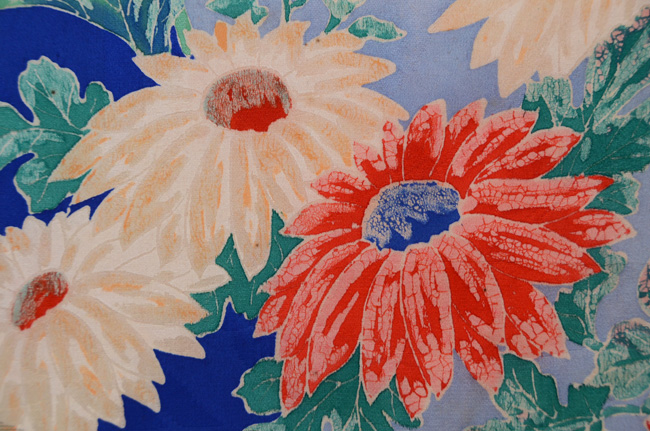 赤頭に菊、前柄に唐団扇と、意味を問う文様が続きますが、目下の所、テーマが見えて来ません。