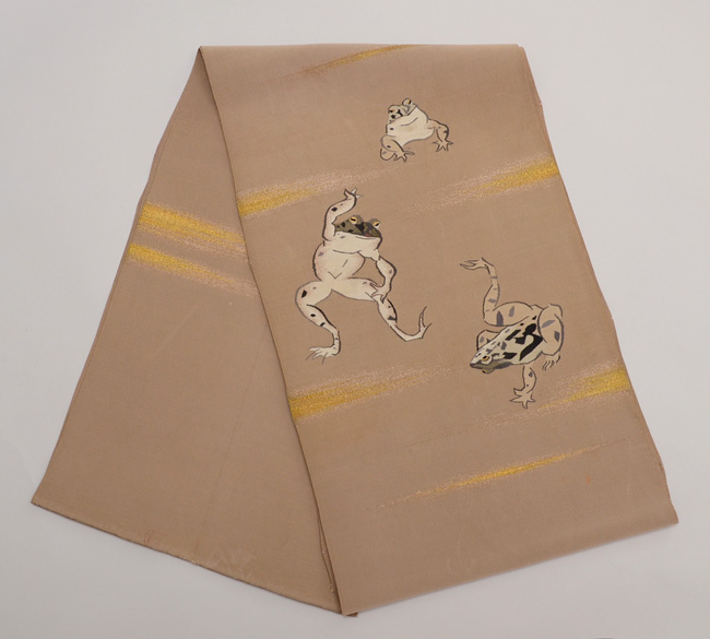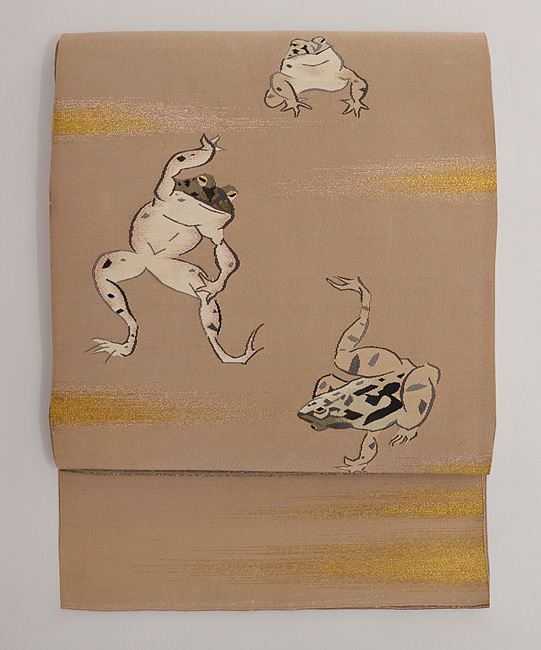 幾何学と動物など具象文様とが、かわいくデザイン化されて、心癒される優しい帯になりました。