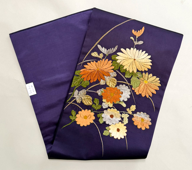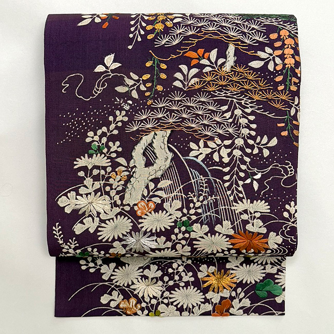 濃い紫と紅のコントラストが冴え渡る帯となっています。