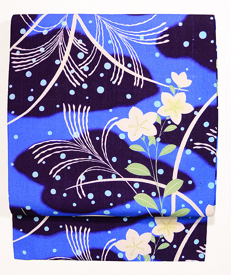 鳩の羽根色のような、紫をおびた灰色の帯地は、しっとりと美しく大人の女性を彩ってくれる事でしょう。