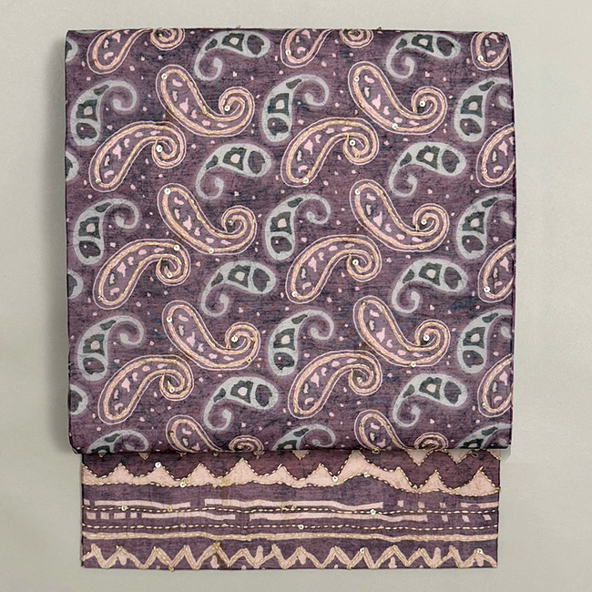 額縁文様で縁取られたこちらの帯は華やかな装いにもお使いいただけるとても使い勝手の良い帯です。