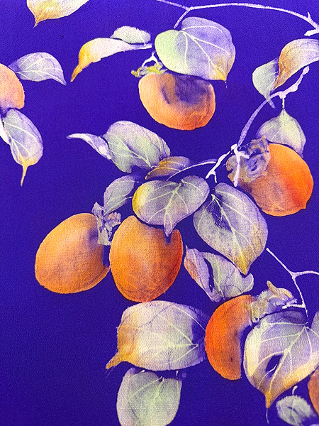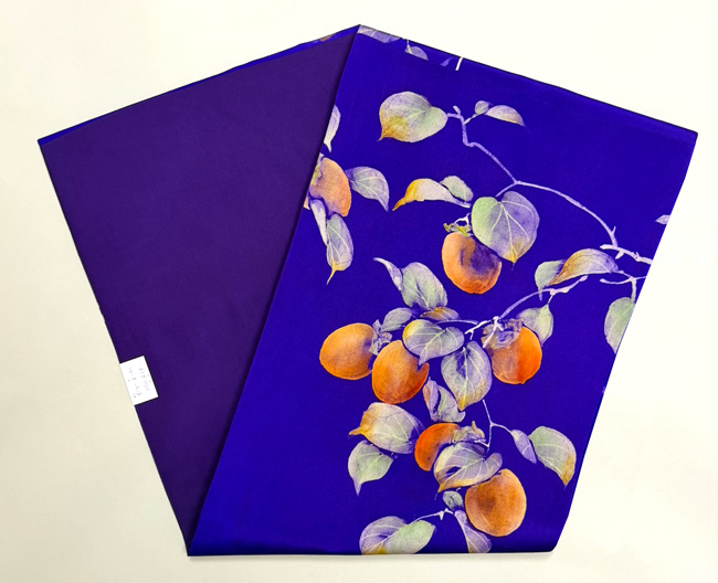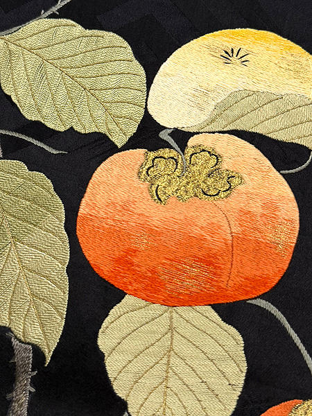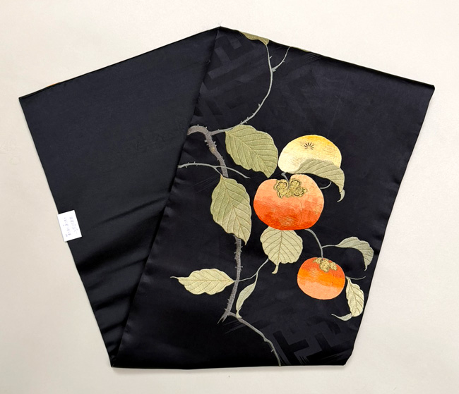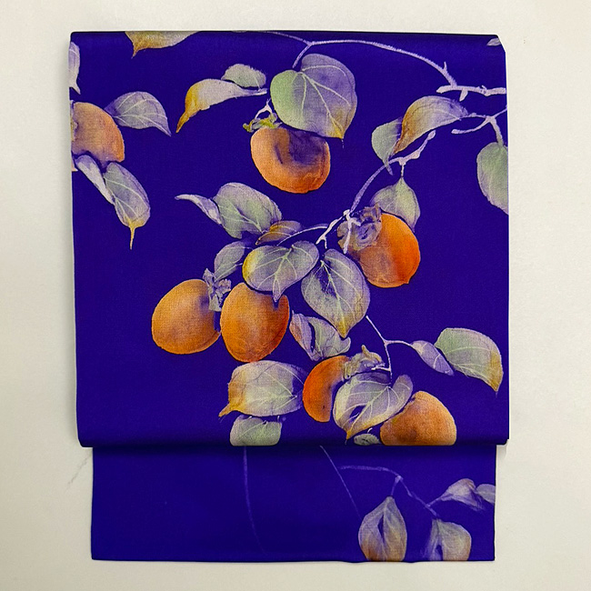 大きな柿がたわわに実って存在感たっぷりな秋の帯です。