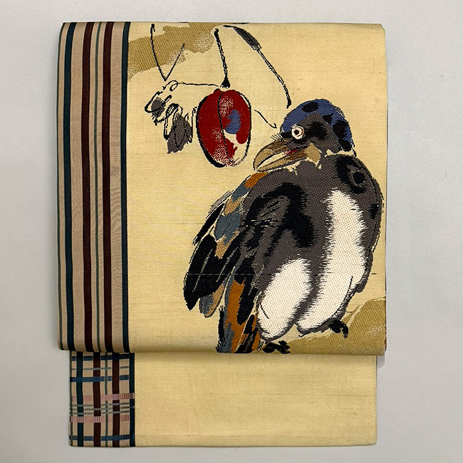 烏瓜にカラス織り文様の名古屋帯