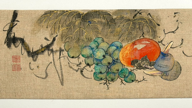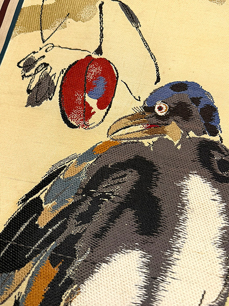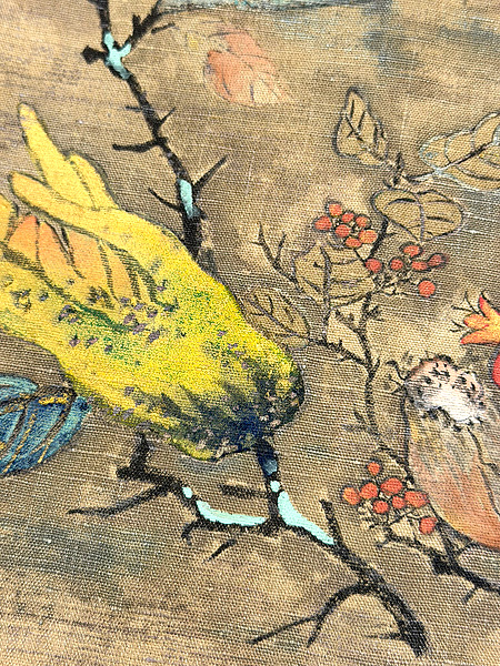 厚い木綿のキャンバス地に、日本画のタッチで、温もり感を含んで丁寧に描かれています。