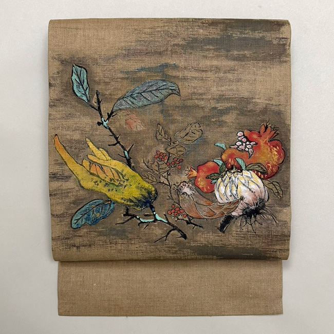 柿枝文様の名古屋帯