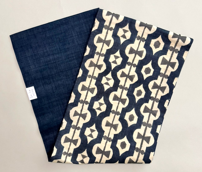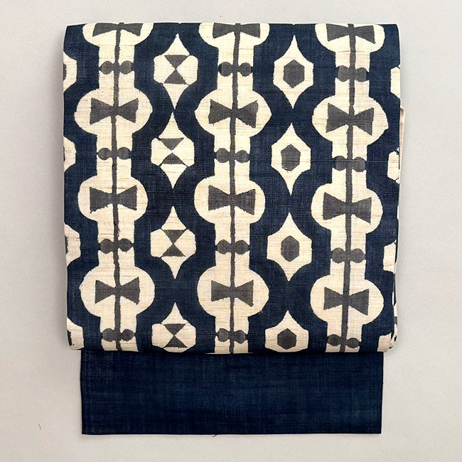 趣深い、古い藍型染めの布からお作りした名古屋帯。