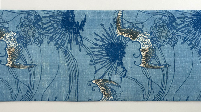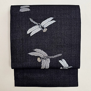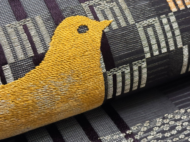流れるような曲線に遊ぶ千鳥たちがかわいい名古屋帯です。