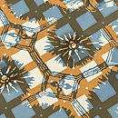ほっこり温かみのある山吹色に穏やかな風景画をおいたような心和む紅型の帯です。