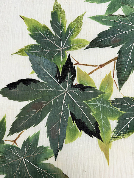 紅葉、笹竹、山、樹木、流れ、どれもきれいな色で染められ、合わせるお着物の色も幅広くお選びいただけます。