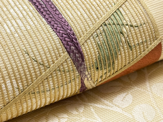 金糸をふんだんに使って豪華な刺繍帯ですが、帯心は薄めで締めやすいです。