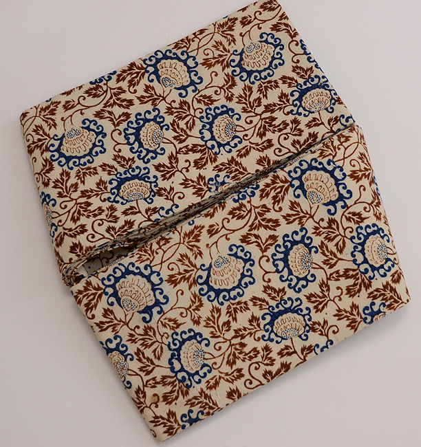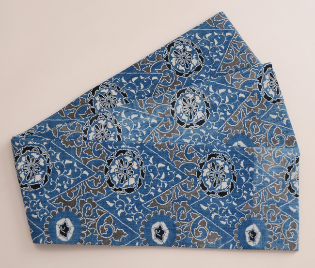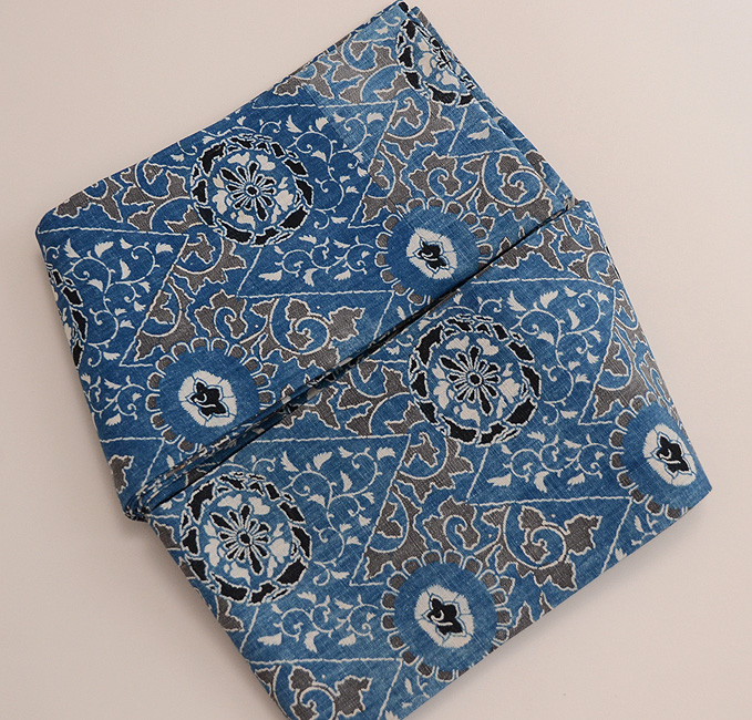 白地に藍の唐花文が、滲み入るように美しい和更紗です。