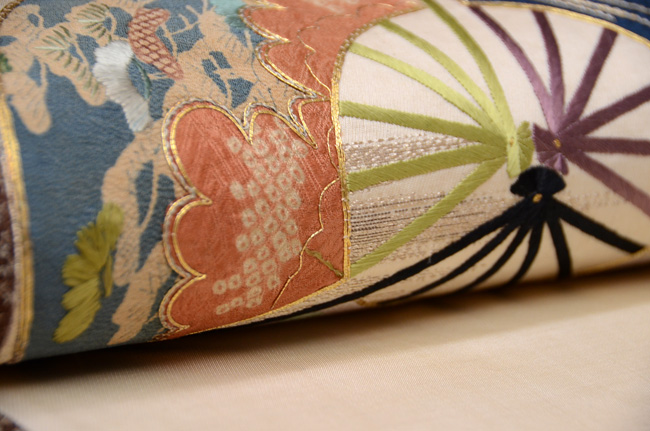 巾が細かったので、おそらく作られたと思われる明治期の帯地を添えたら、プラス効果が現れました。