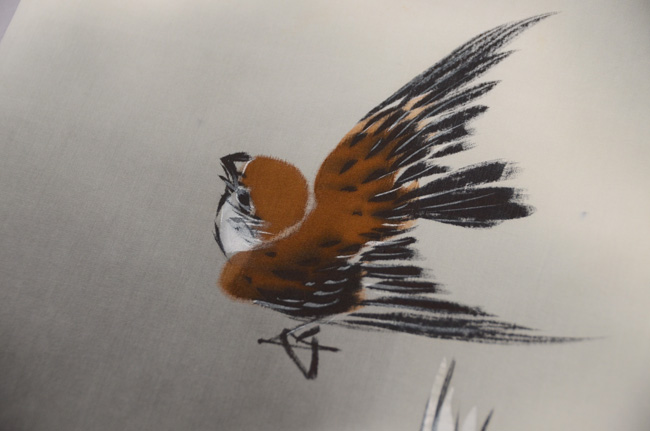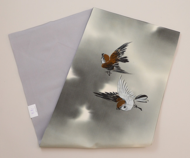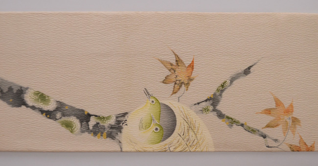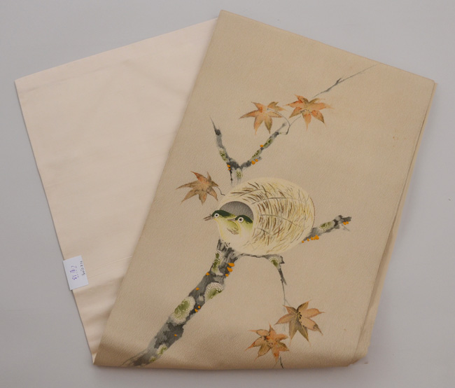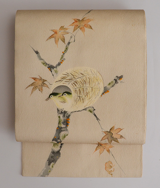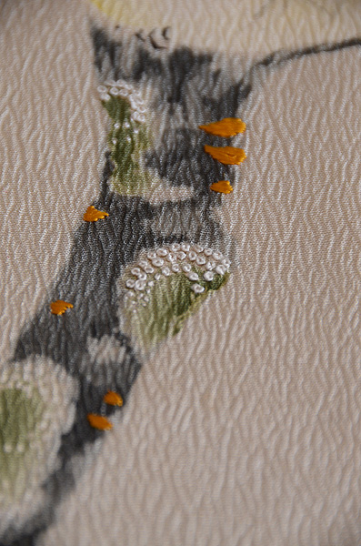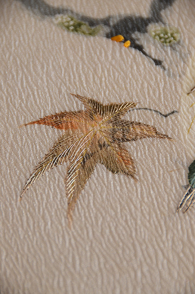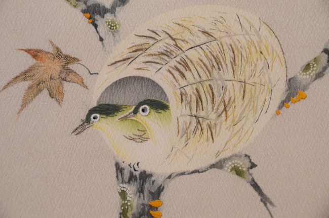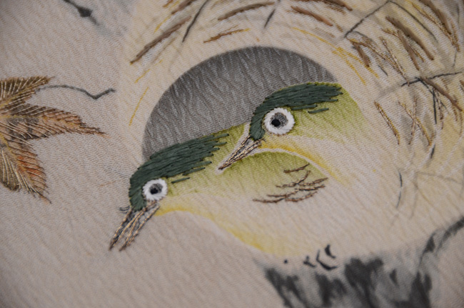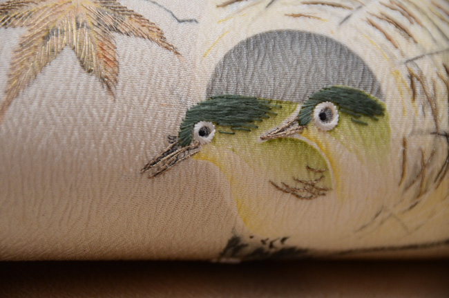 綺麗な象牙色の紋綸子地に、天然染料の清く艶やかな刺繍糸が映えます。