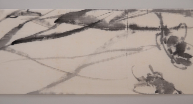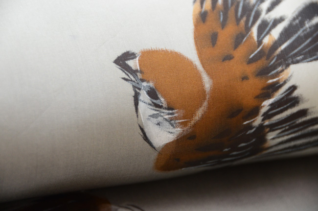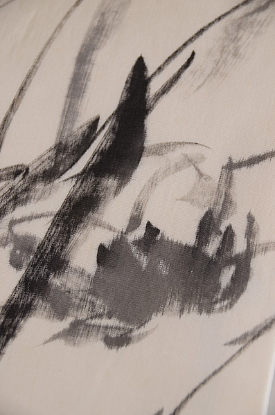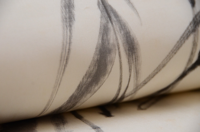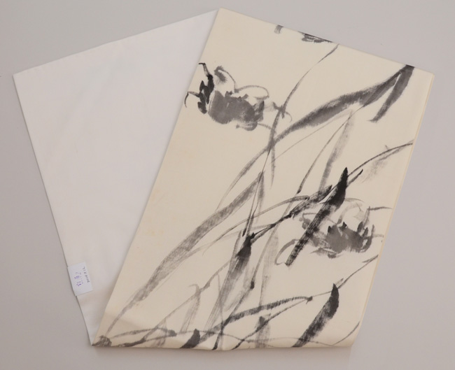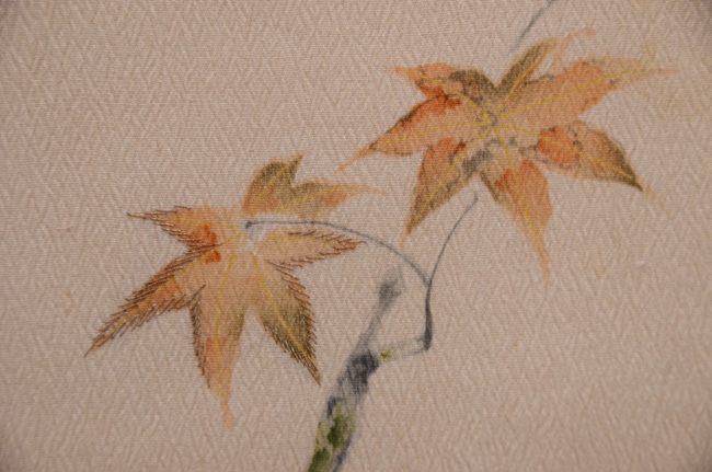 地は蒔糊風ですが、緯糸が明るい褐色で、先染めのようです。