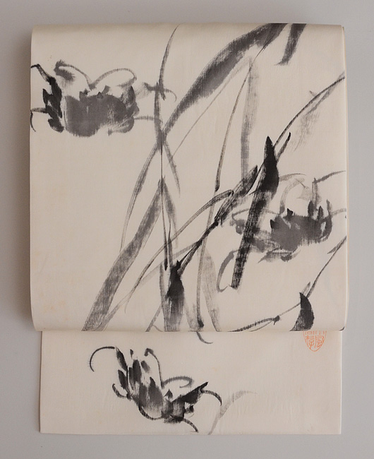 刷り疋田の素朴な美しさも加わって、賑やかで格調の高い帯になりました。