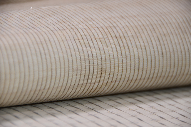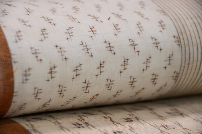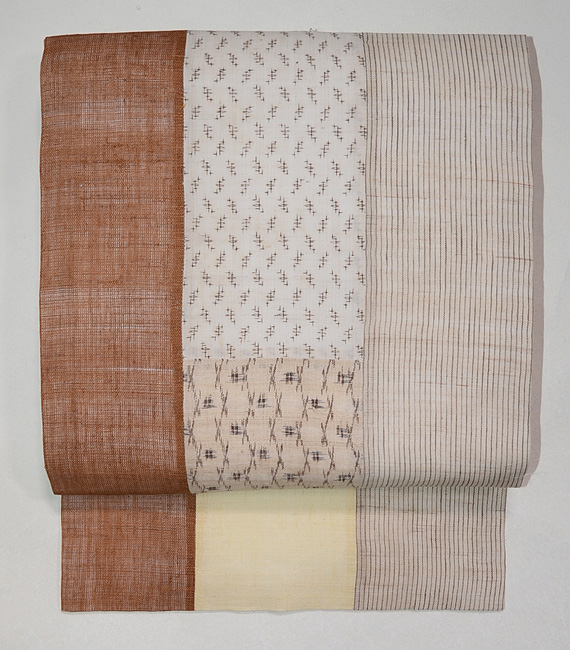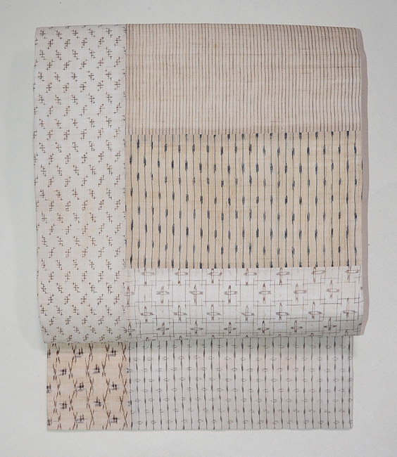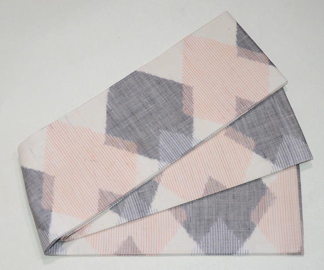 宮古上布の深い藍の上に乗せてあげたら、美しくハモってくれそうな、そんなやさしい帯です。