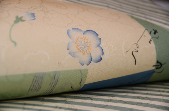 元は丸帯でしたが、解くと図柄が一幅の絵画のようで、その柄を切り離して、袋帯にするのには勇気が要りました。