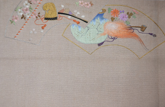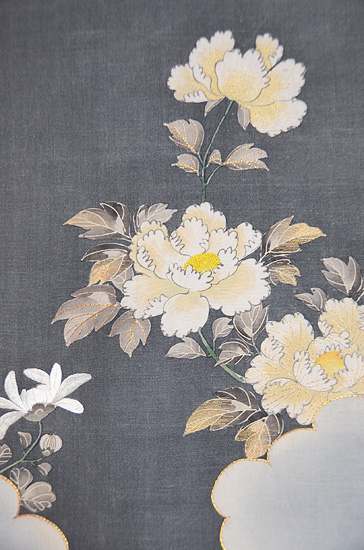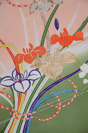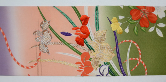 お太鼓には牡丹、見えない所に菊の見事な友禅は、明治期の振袖でした。