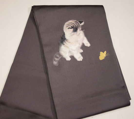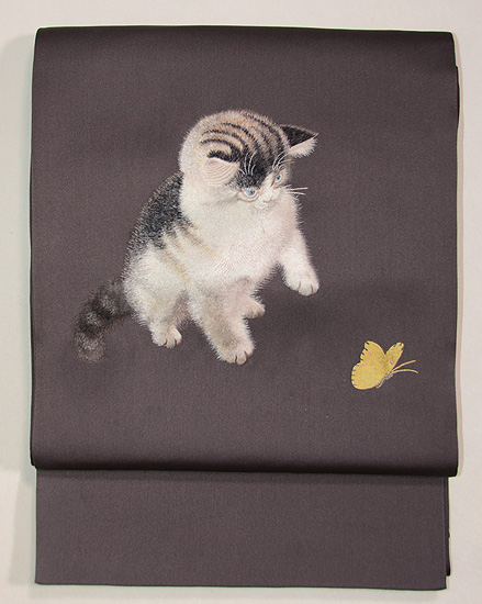蝶と遊ぶネコちゃんの袋帯