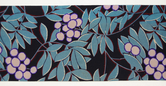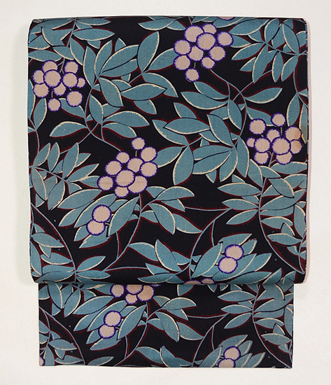 南天は冬のイメージですが、爽やかな青い葉っぱに囲まれて、これからの季節にも重宝しそうな帯です。