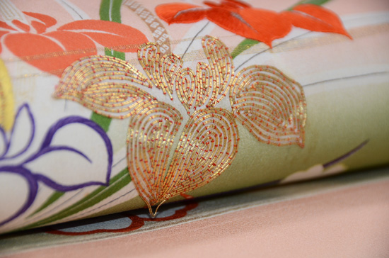 地には、摺箔文様が織られていて、豪奢な様が重層的になっています。