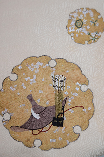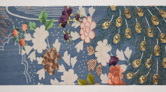 地面を覆い尽くすかのように、立派な刺繍のある丸帯です。
