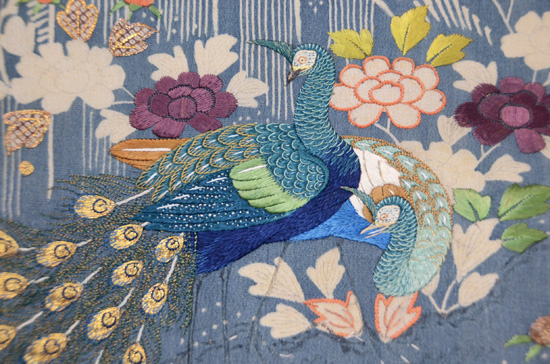 お花も房の刺繍も見事に立体感のある、迷いの無い針仕事で進められています。