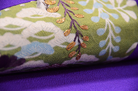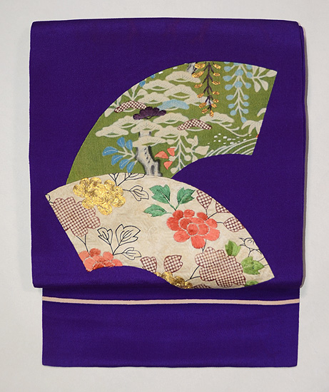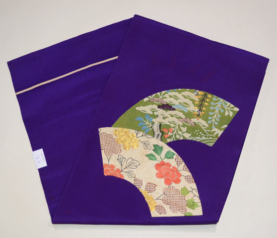 青紫の縮緬に、江戸裂を切り嵌めています。