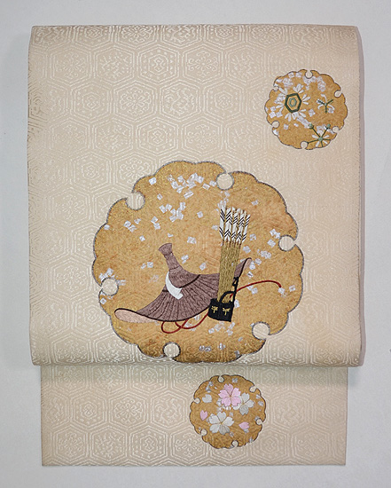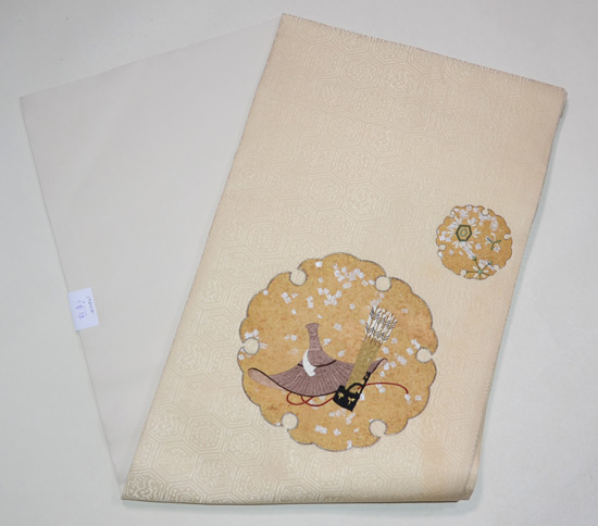 生成りの繭の色が美しい、創作の名古屋帯です。