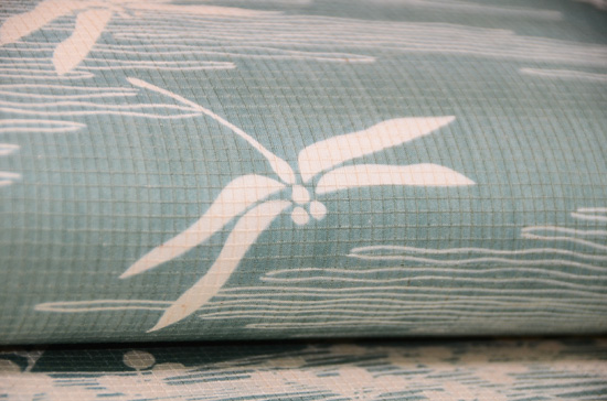 白い上布に、藍の濃淡3色の陰影が美しく、奥行きのある、凛とした涼やかな夏帯ができました。